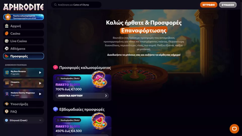 Κάποια από τα πιο δημοφιλή μπόνους στο καζίνο Aphrodite το 2025 είναι τα παρακάτω: