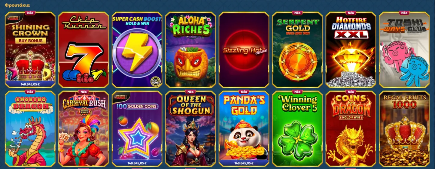 Τα κλασικά φρουτάκια αποτελούν τον πυρήνα της προσφοράς για παίκτες που προτιμούν απλούστερες δομές πληρωμής. Το καζίνο Casea περιλαμβάνει τίτλους με διαφορετικές μηχανικές, από κλασικά πλέγματα έως Hold & Win. Ακόμα και στην κατηγορία αυτή, η εγγραφή ενός παίκτη τού παρέχει πρόσβαση στο σύνολο του καταλόγου χωρίς πρόσθετες προϋποθέσεις.