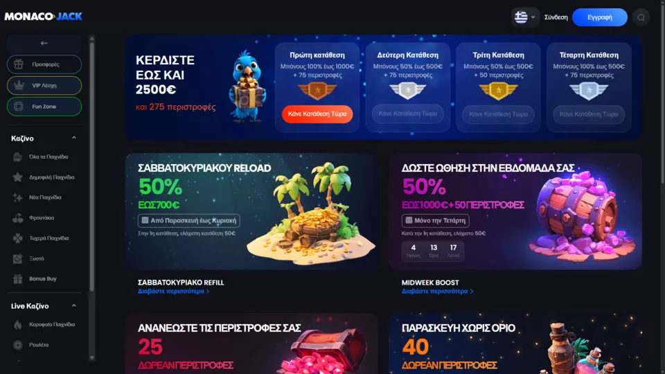 Ορισμένα από τα πιο δημοφιλέστερα μπόνους στο καζίνο MonacoJack το 2025 είναι τα εξής: